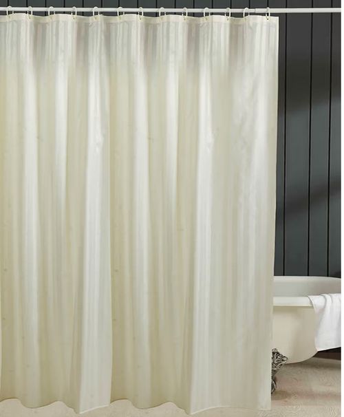 Shoer Curtains are 100% polyester $ water repellent. These are available in white with Rings and without.